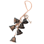 A rustic set of witch bells featuring six bells on a tweed-style rope, finished with decorative charms for a magical, handmade-inspired look.