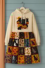 🐈⬛ Cats & Pumpkins Hoodie Smock Dress – XL fit, playful pumpkin patch vibes with an added hood – with pockets!