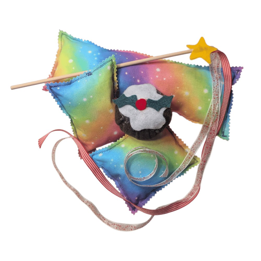 Every stocking includes a beautiful handmade stocking plus a curated selection of festive toys: