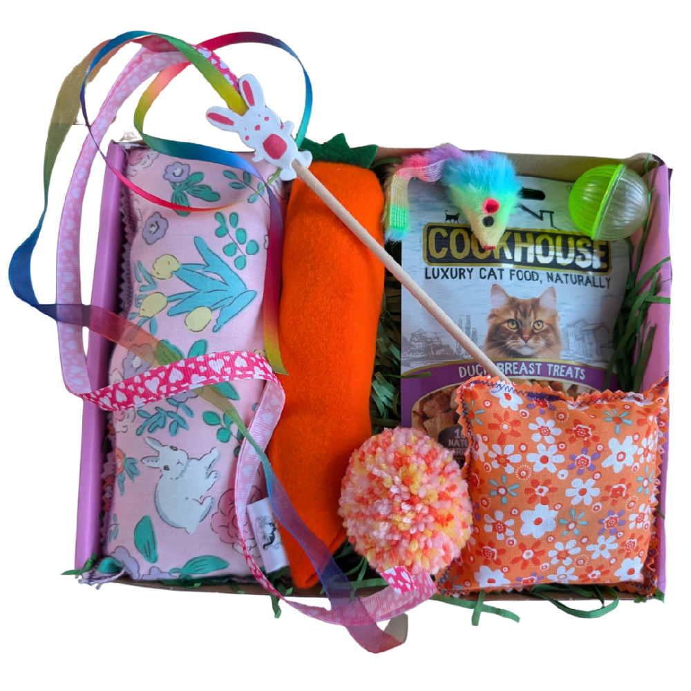 A special Spring treat for your cat, packed with playful surprises and handmade toys.